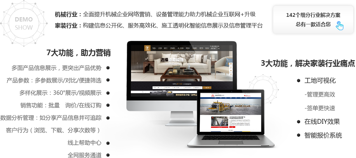 構建信息公開化、服務高效化、施工透明化智能信息展示及信息管理平臺。我們善于抓住行業痛點,一切皆為營銷服務,142個細分行業解決方案。